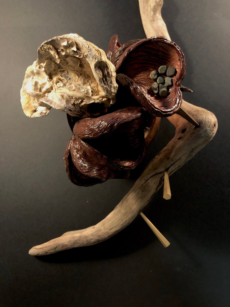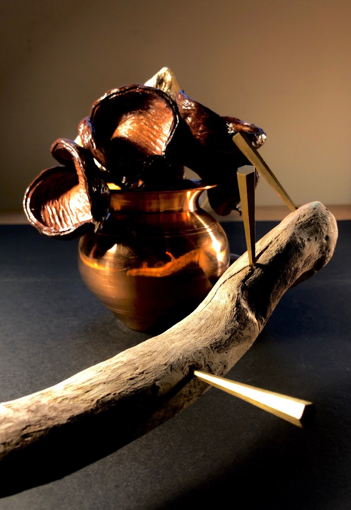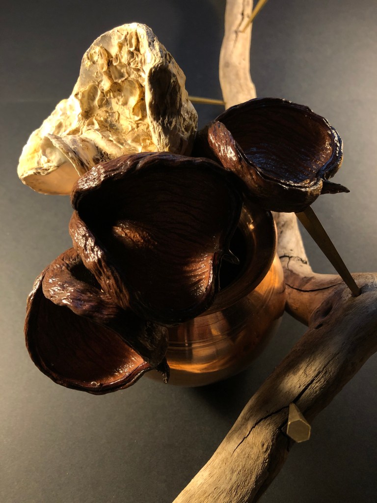Title: Stygian Bloom | Medium: wood, shell, copper, brass | Size: dimensions variable | year: 2020 Related